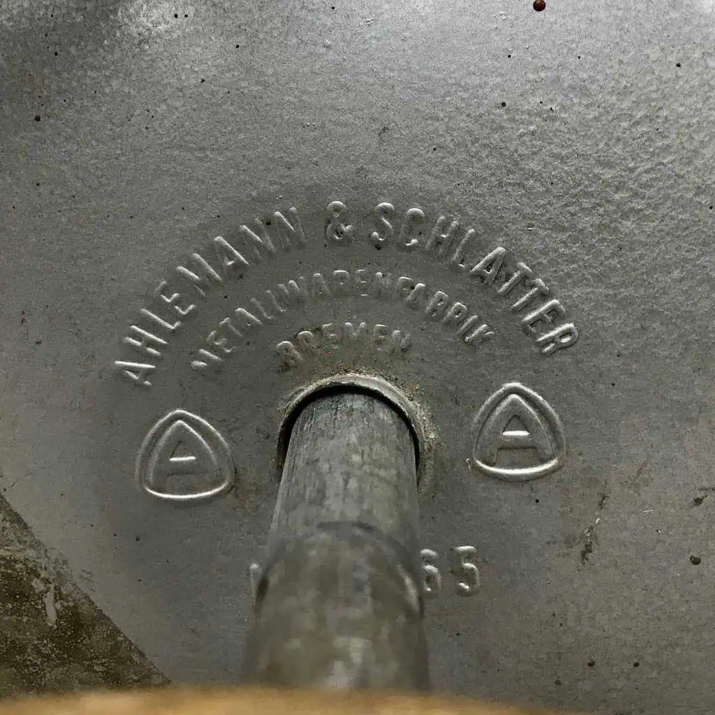 This vintage foghorn was made by Ahlemann & Schlatter, a German company known for producing quality maritime equipment since 1868. Though this piece is no longer in working condition, it’s a solid example of the kind of gear ships relied on for audible signaling before modern navigation systems.