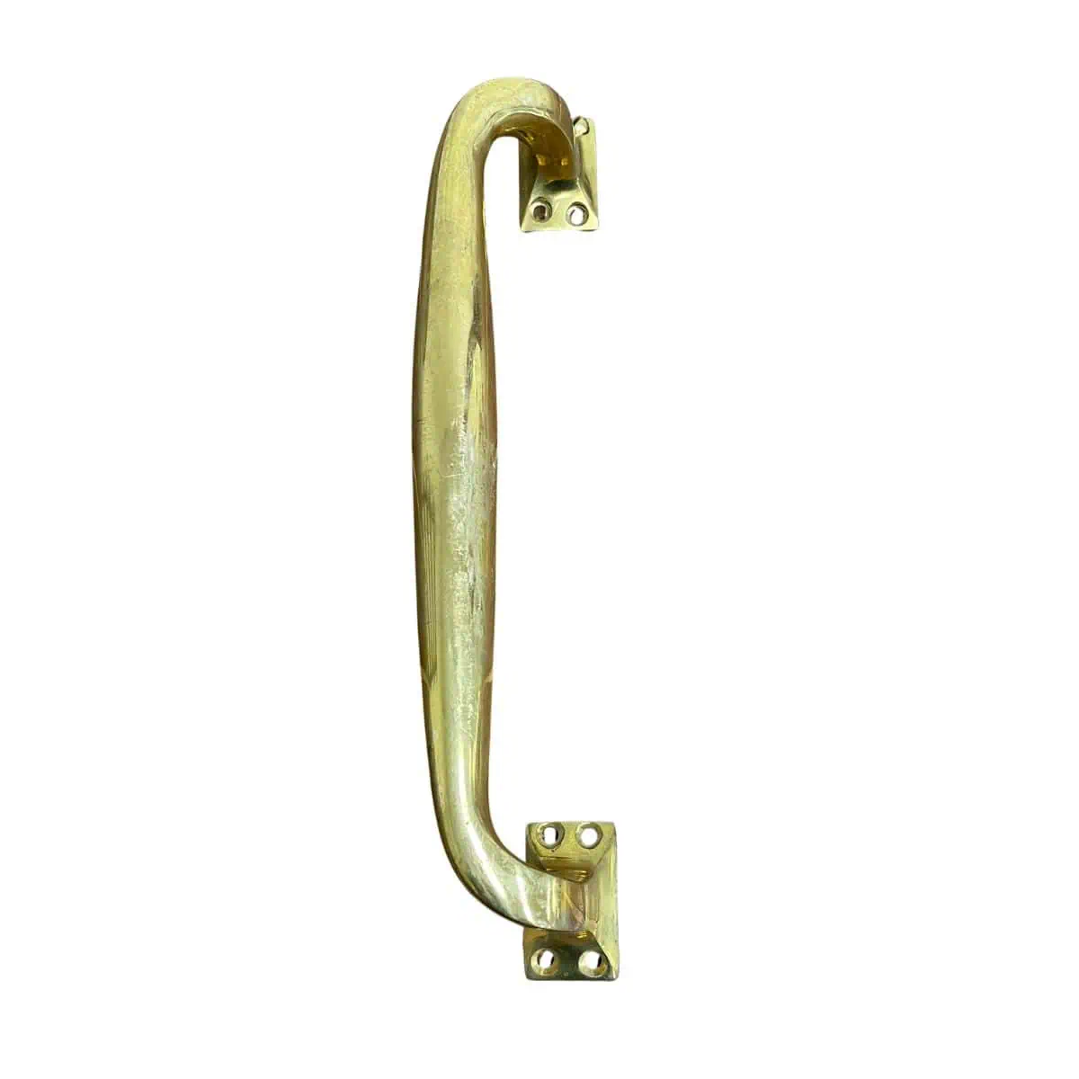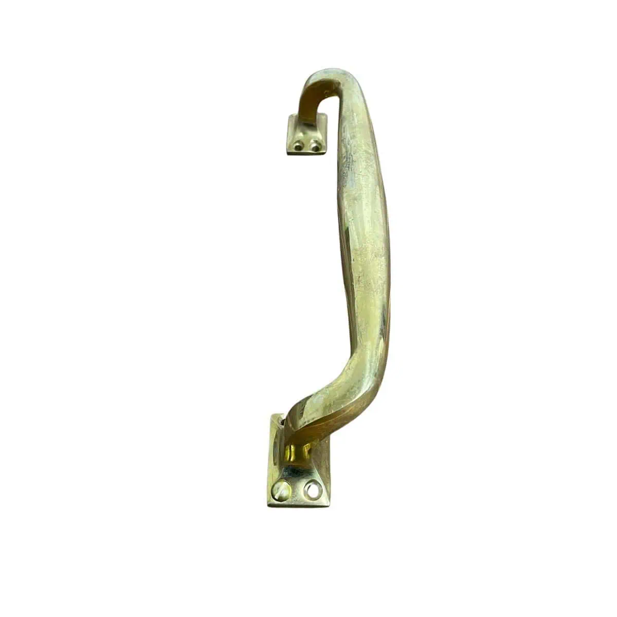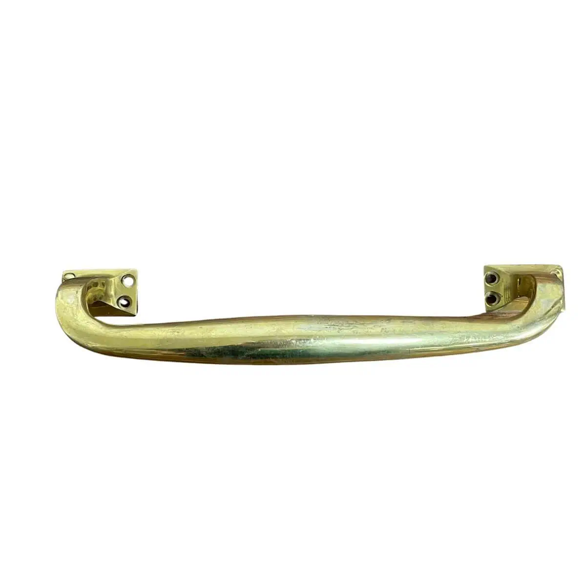 This piece can be used as a door pull, drawer handle, or grab handle in a shop, entryway, or boat setting. The bowed shape makes it especially useful where a firm grip is needed.