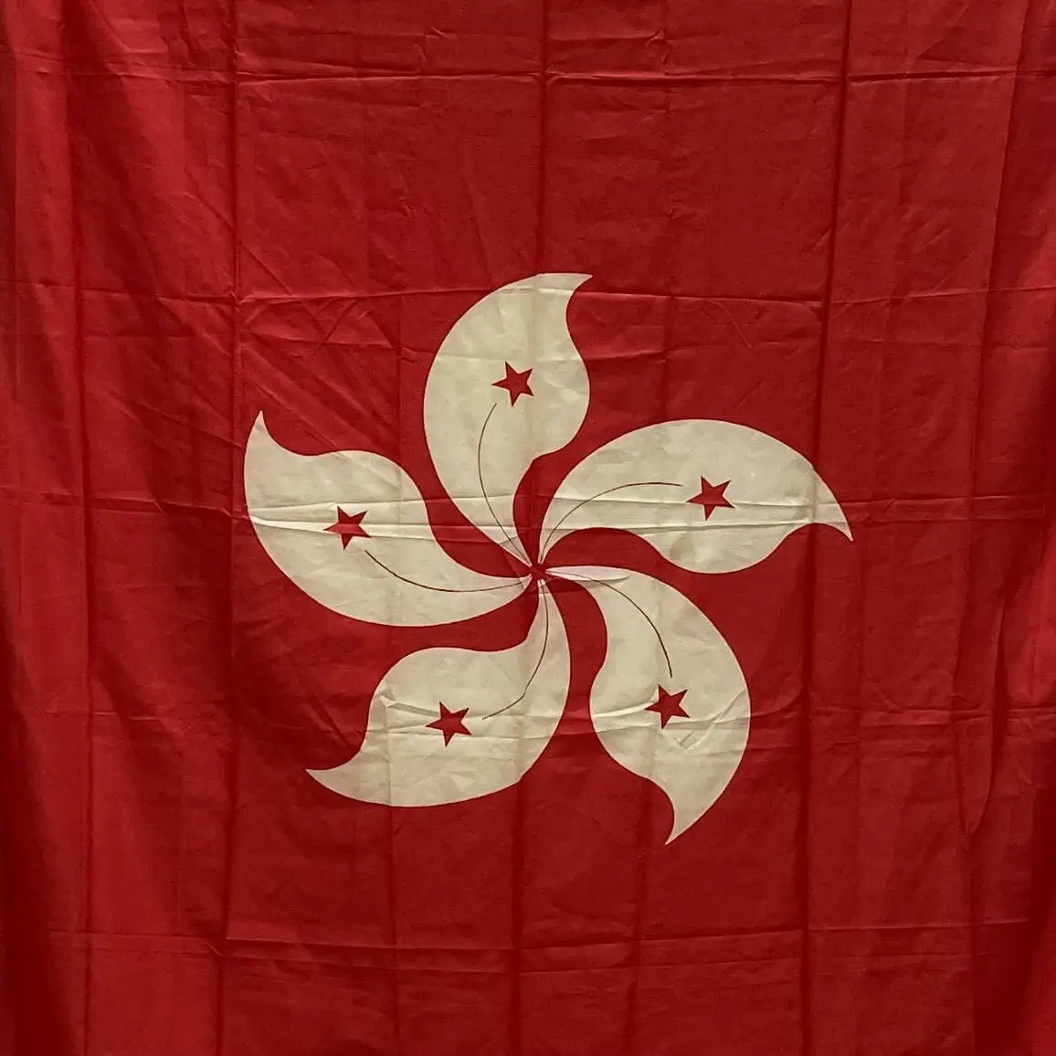 This Hong Kong vintage ship flag features a bold red background with a white bauhinia flower, a key symbol of Hong Kong. The flower design reflects the city’s maritime roots and its unique blend of cultures. The flag also includes five golden stars, which represent the five elements in traditional Chinese philosophy.