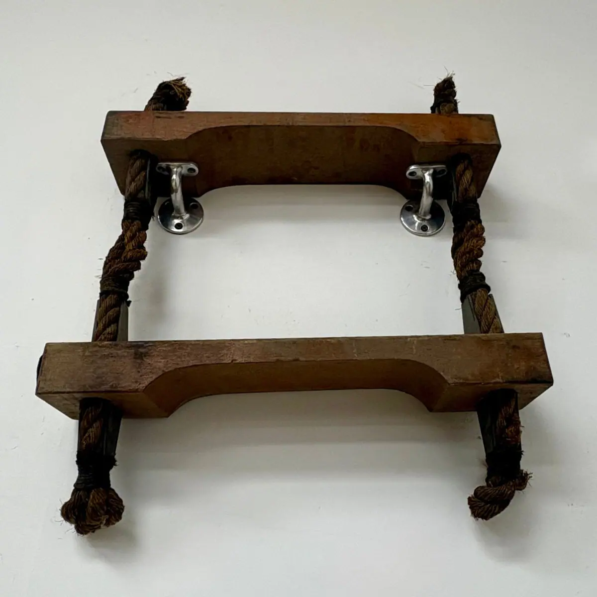 This 2-step nautical rope ladder section is salvaged from real shipboard equipment once used for boarding and pilot access. Often called a pilot or Jacob’s ladder, this design served a practical role on working vessels.