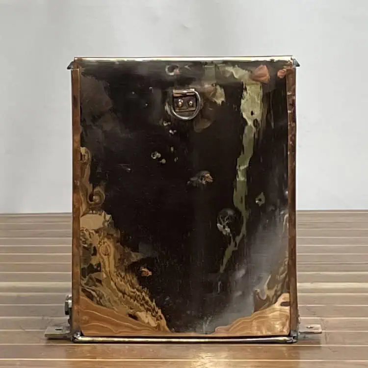 This copper nautical masthead lantern came off a commercial vessel, where it marked the forward-facing position on the mast. Its weathered look and real signs of use give it a lot of character. Whether you’re setting up a bar, outfitting a dock or boat, or just want a display piece, this lantern works well in both practical and decorative spaces.
