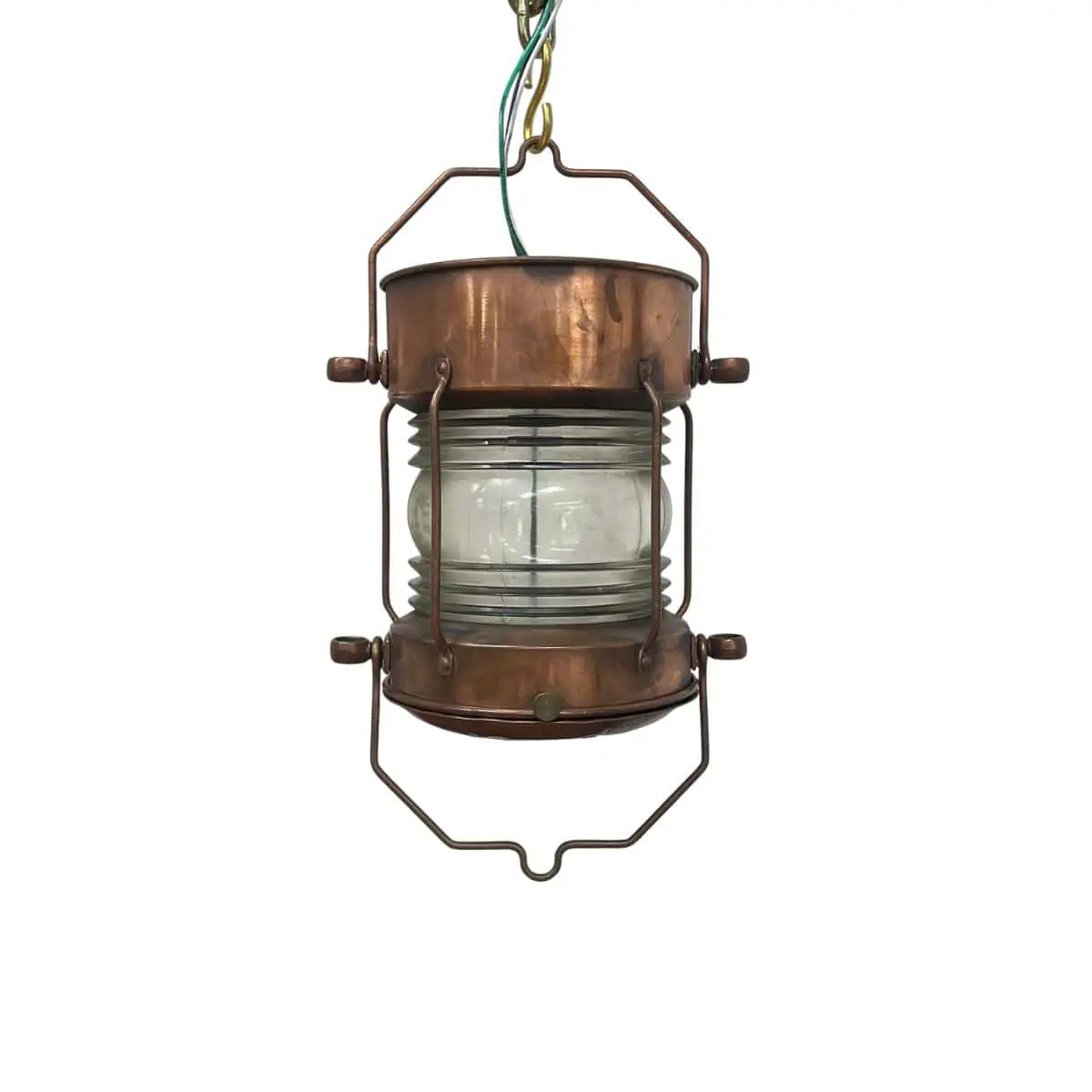 Vintage Copper Ship Lantern with Fresnel Glass Lens