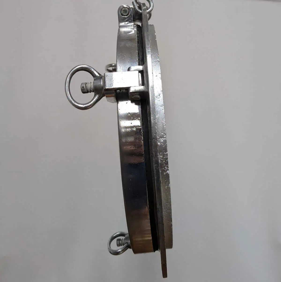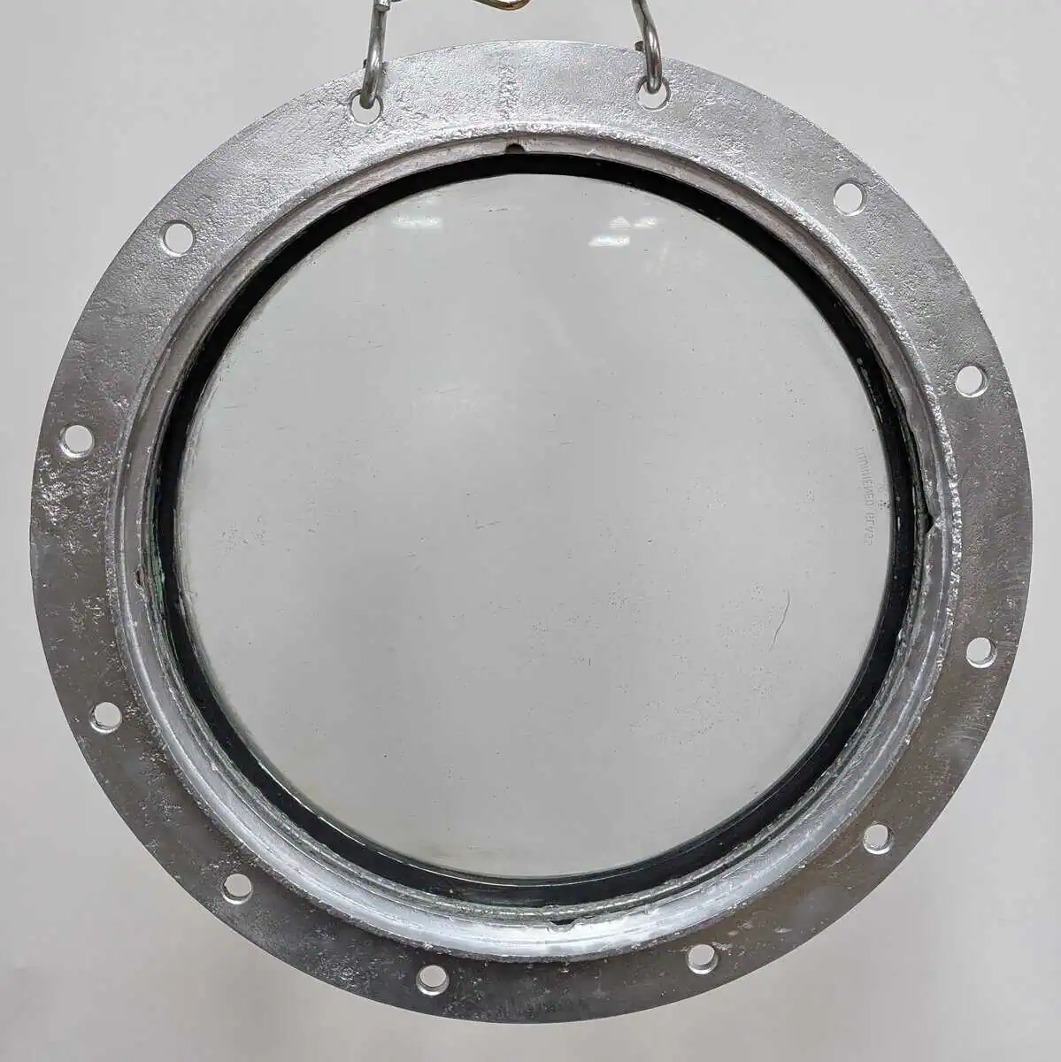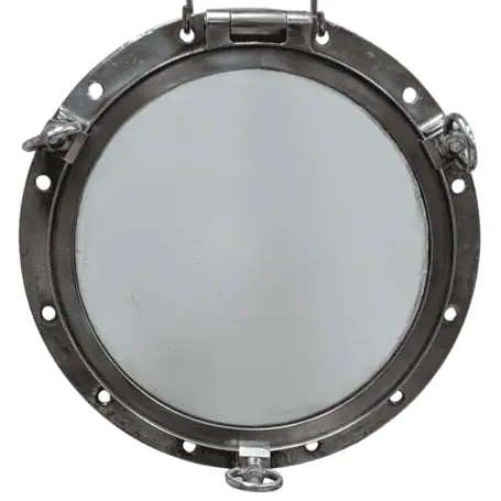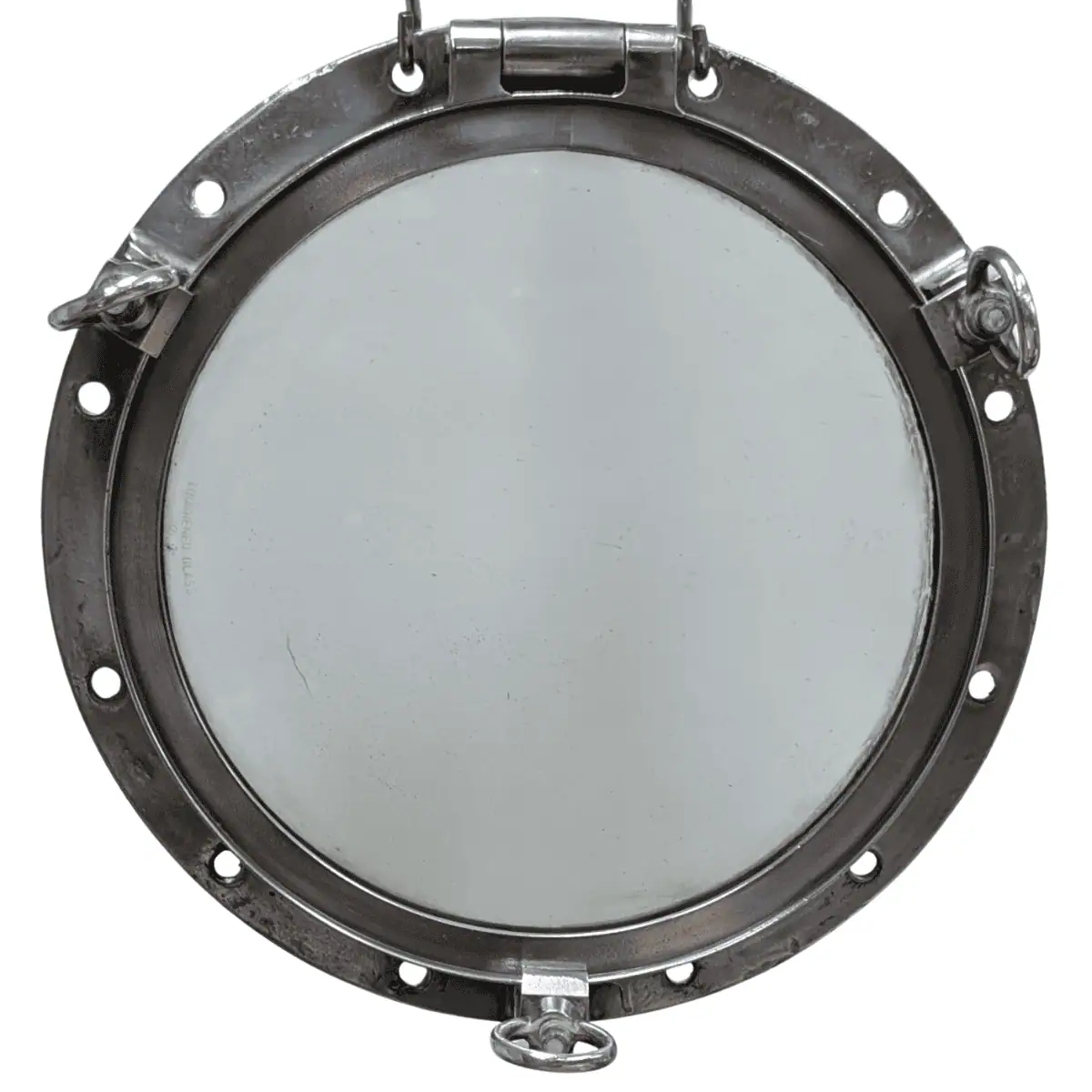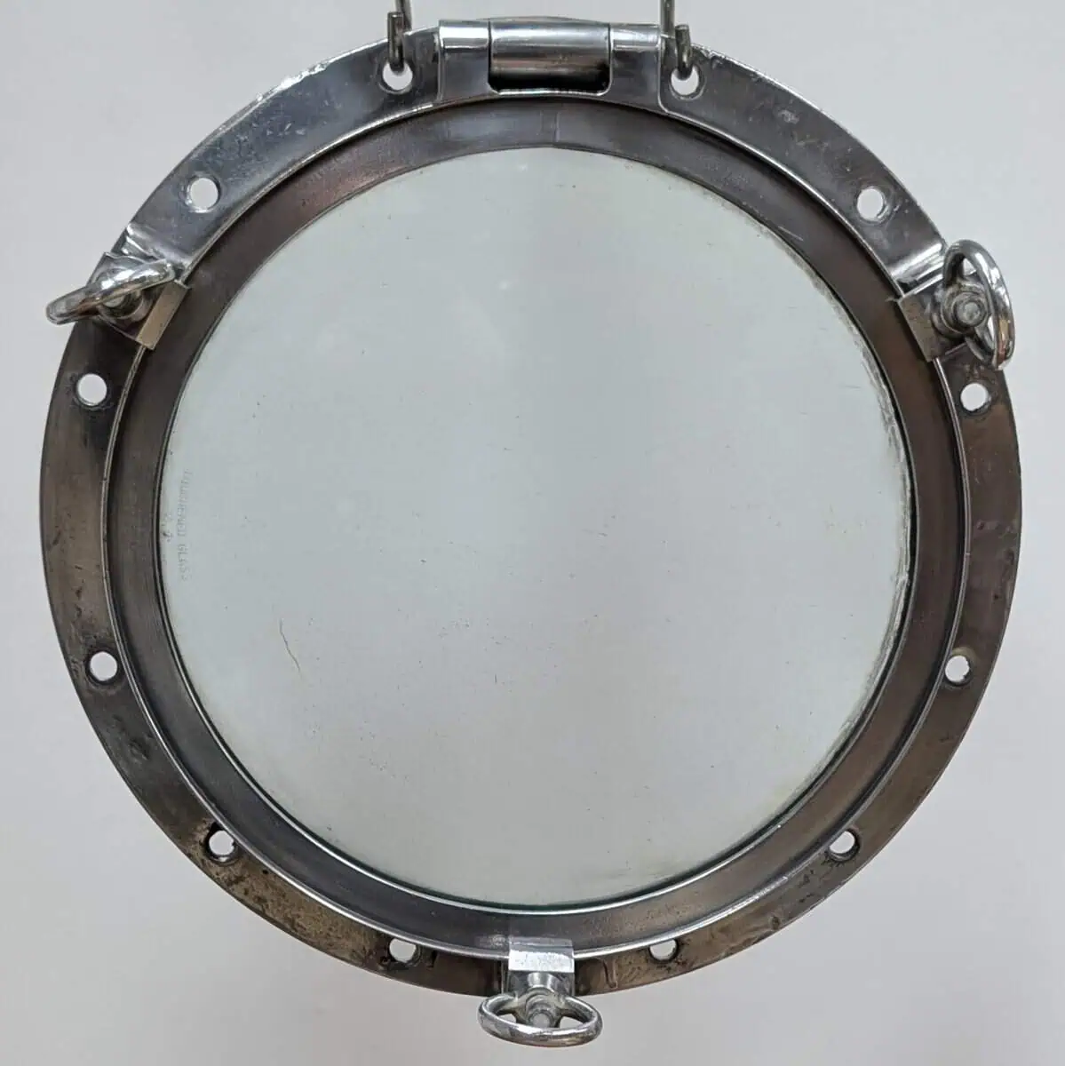 This 21-inch aluminum porthole window is a genuine nautical salvage piece, offering both function and decorative appeal. Its lightweight aluminum construction makes it easier to mount compared to heavier brass portholes, making it a great option for wall decor, window installations, or mirror conversions.