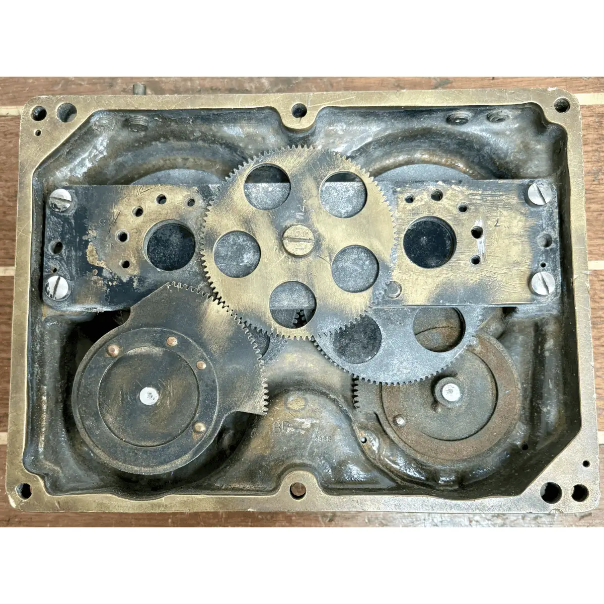Authentic salvaged piece with visible patina, wear, and oxidation across the brass. The lenses are intact and vary in shade from dark to light as part of the original filter system. The internal optics have not been inspected or tested. All moving parts operate, but the function has not been verified. Sold as is.