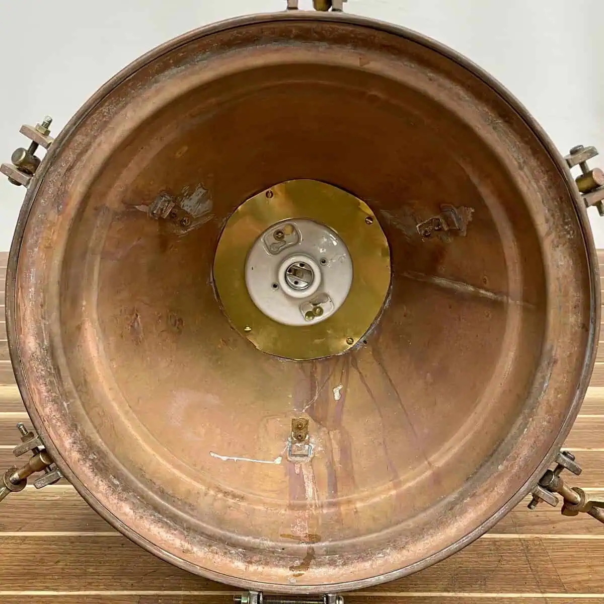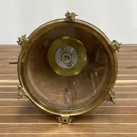 The brass naturally darkens over time, developing reddish and brown tones. We’ve left that original finish untouched to highlight its maritime history and character.