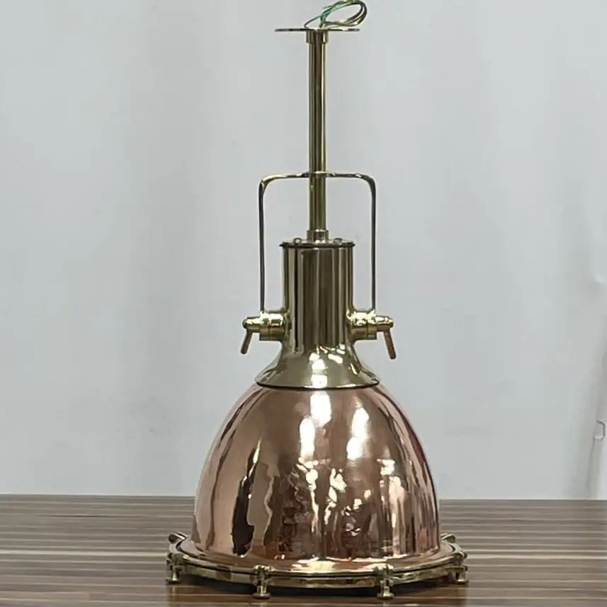 Because of its size and industrial shape, this light works well in kitchens, garages, bars, or commercial spaces. Over time, the copper and brass finish will age naturally. As it reacts to air and moisture, it forms a rose-colored patina.
