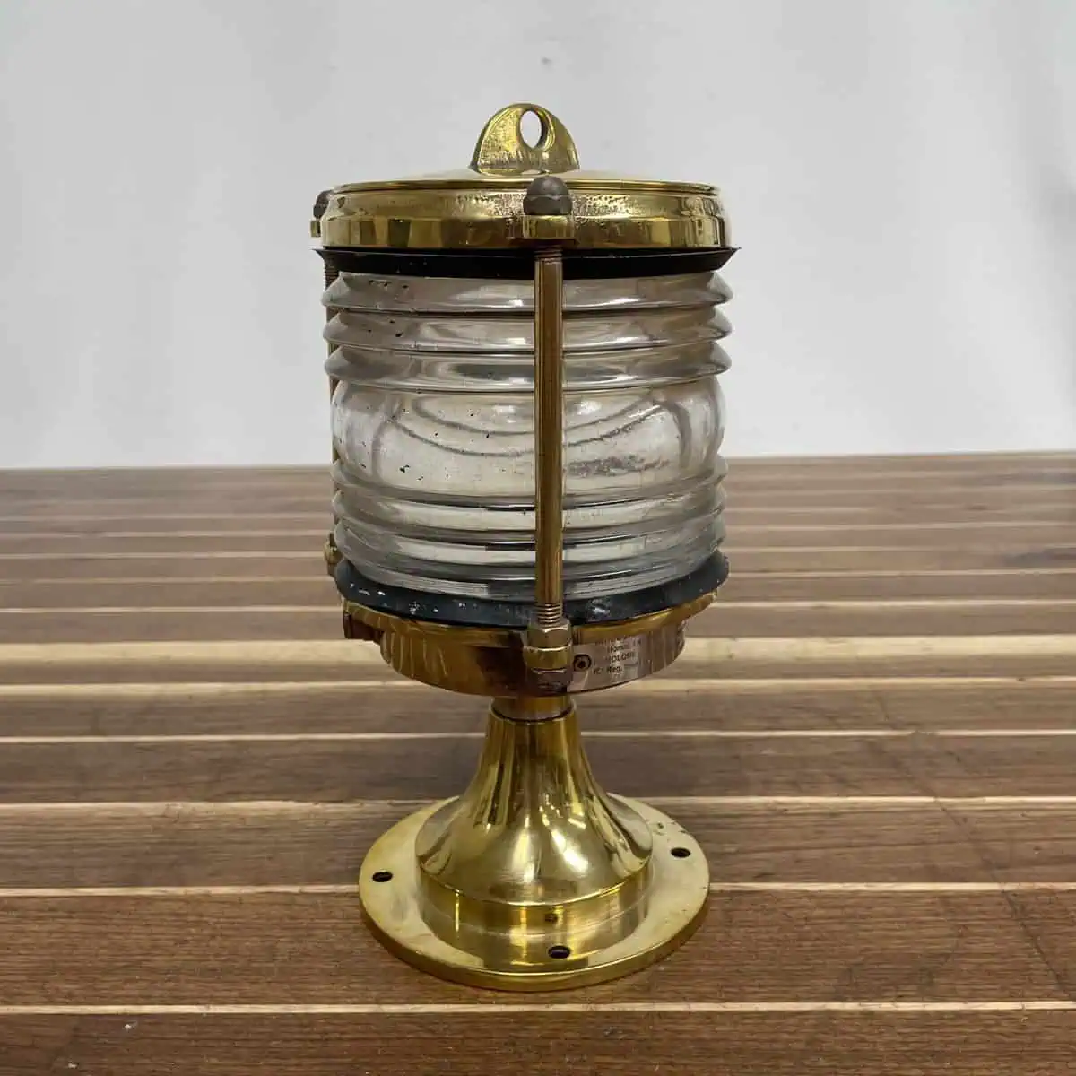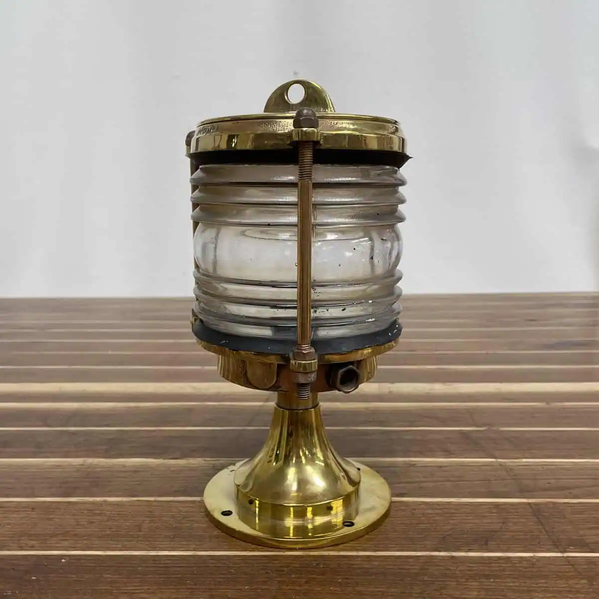 This light’s solid brass build and thick glass help it endure years of service at sea. It still works well and remains in excellent condition. Use it on desks, nightstands, entryways, or other spaces where you want a practical, maritime-style light.