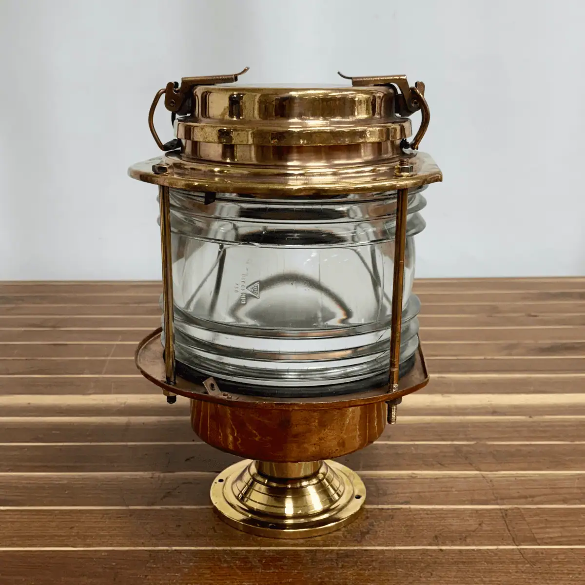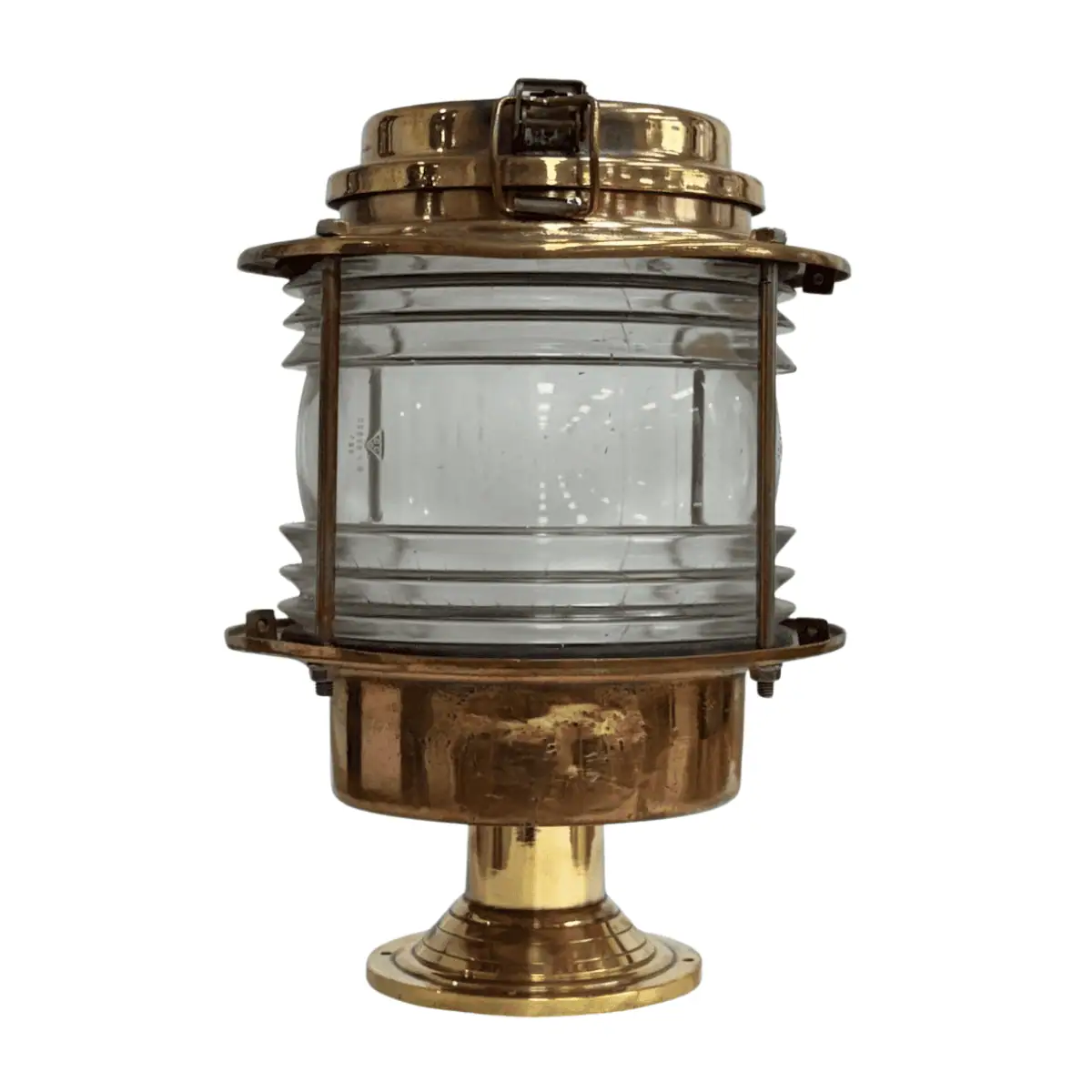 Vintage Brass Pier Light with 360° Clear Fresnel Lens
