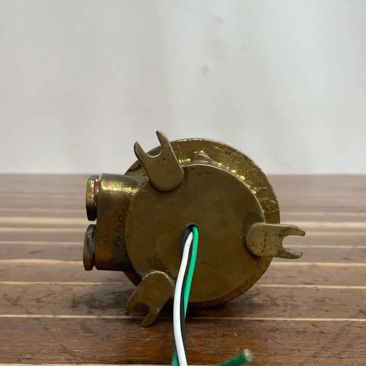This ship passageway light is a solid brass fixture salvaged from a working vessel. It shows clear signs of long-term use, and the surface has developed a heavy, natural patina. Each light varies slightly in tone and wear due to age and service conditions.