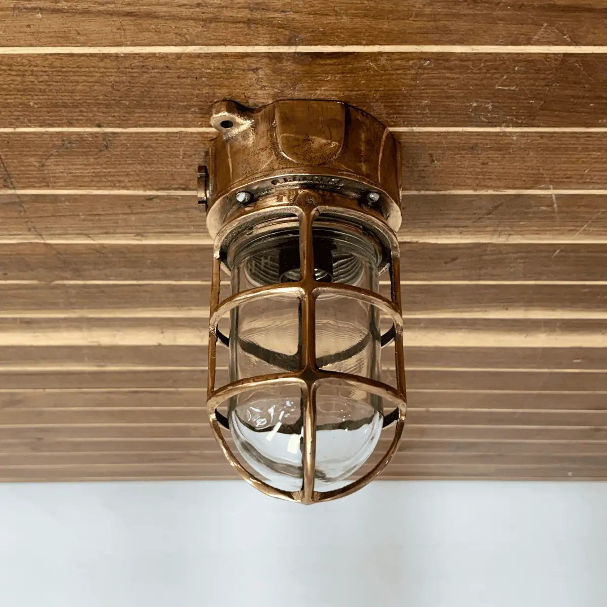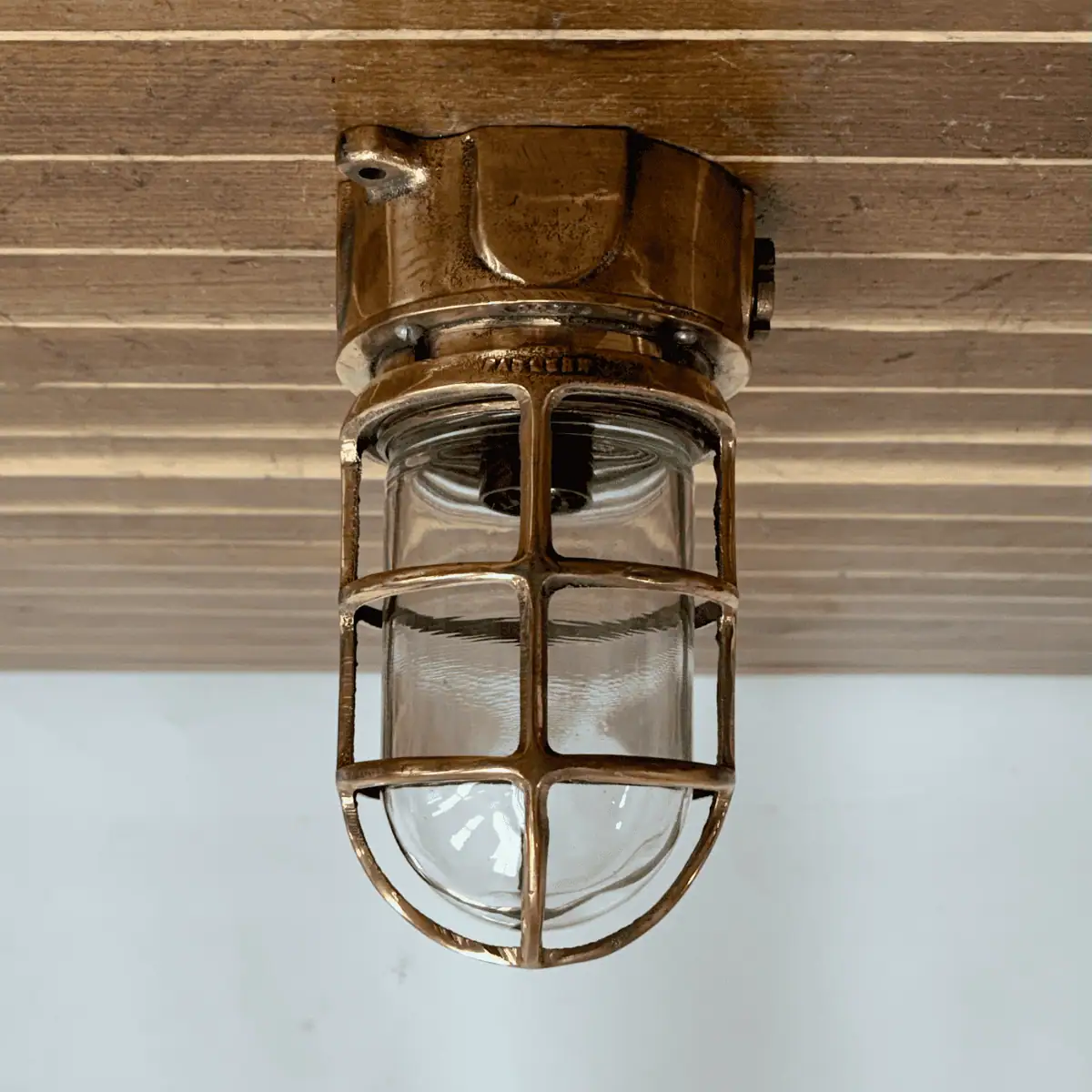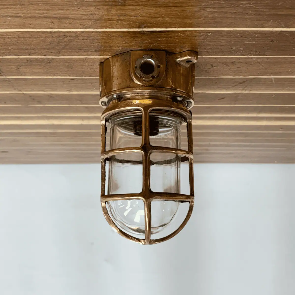 Tall Cage Red Brass Ceiling Light – Pauluhn USA-Made Nautical Fixture