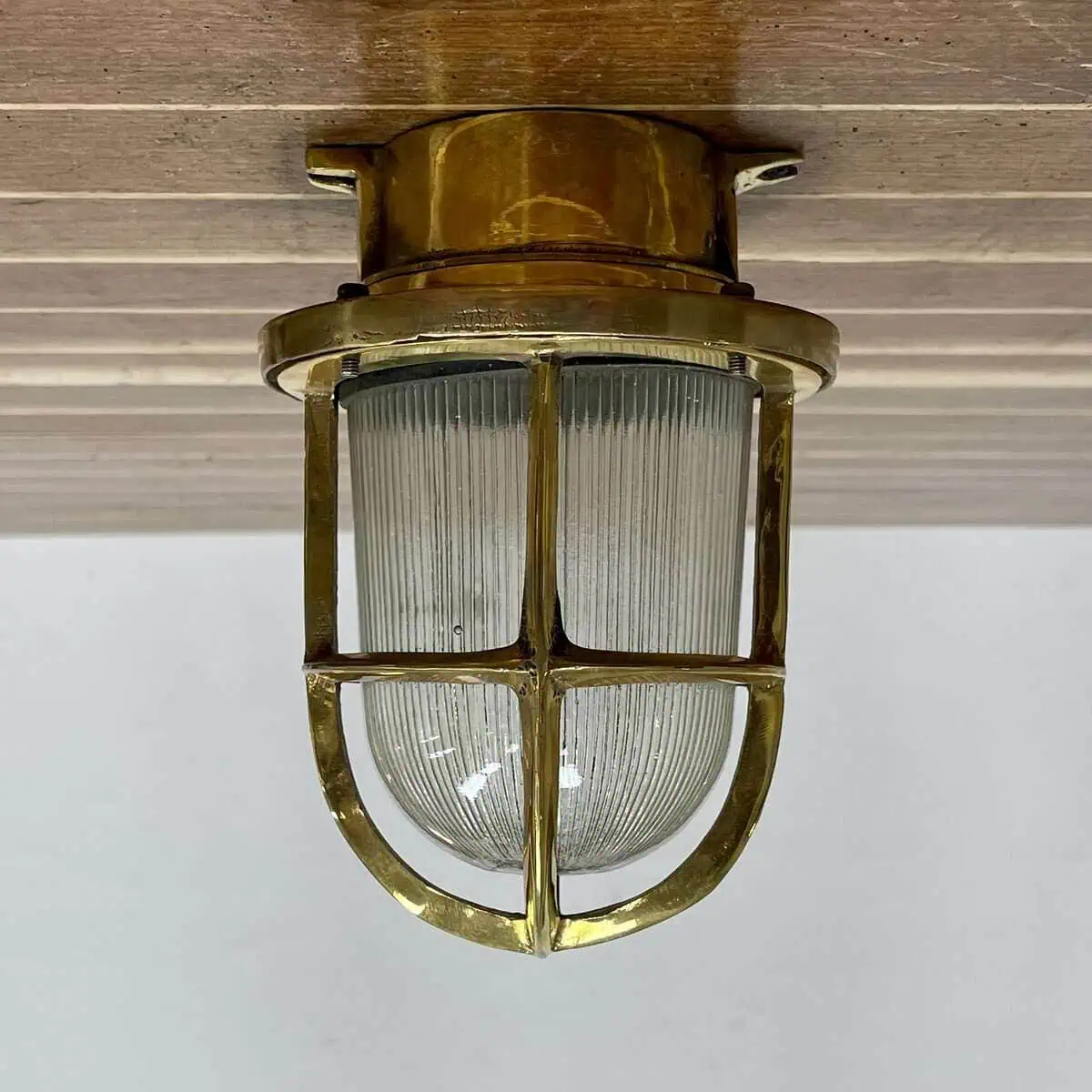 Nautical Ceiling Light with Cage | Ribbed Glass Globe