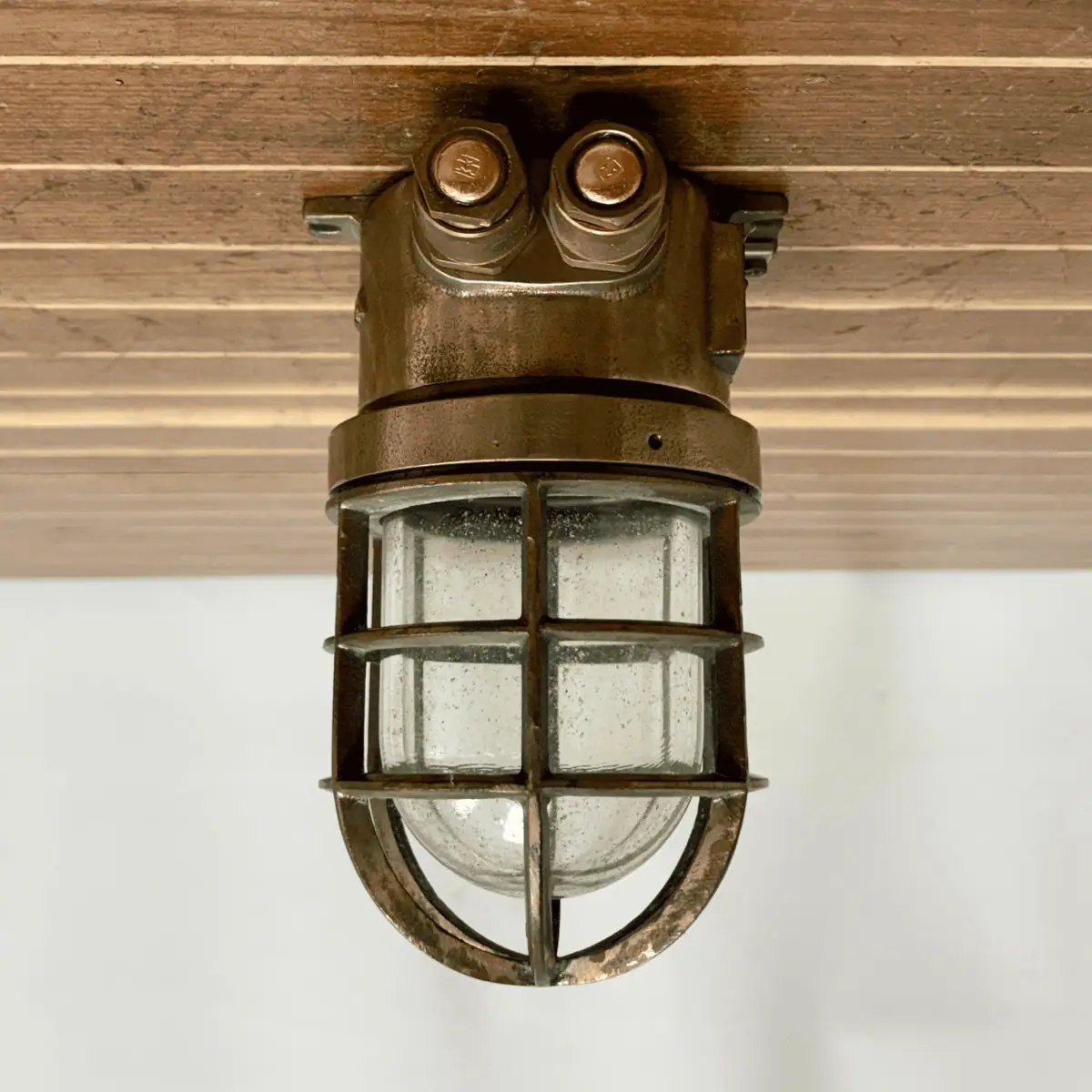 - Vintage Wiska brass ceiling light salvaged from a working vessel