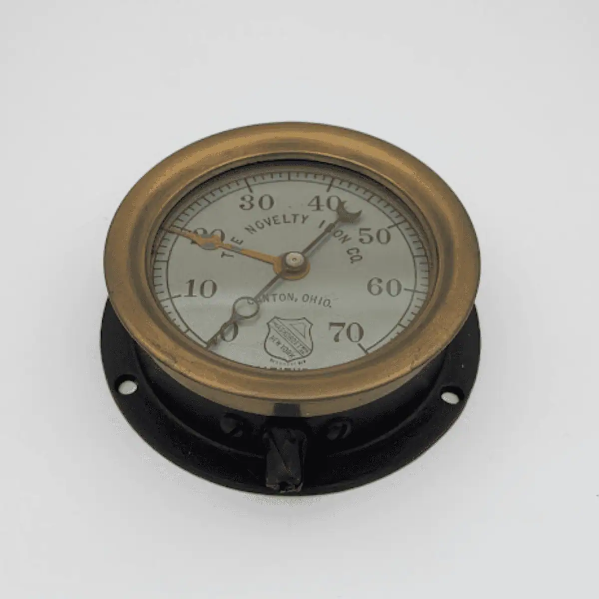1907-1916 The Novelty Iron Co. Canton, Ohio Antique Brass Pressure Gauge