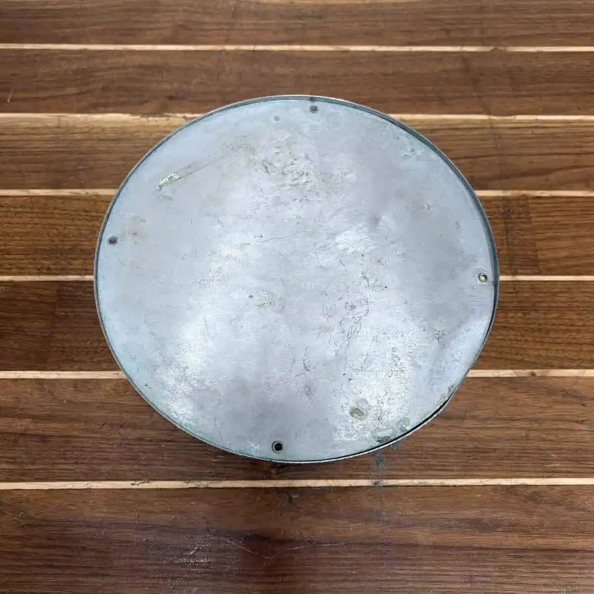The aluminum case displays wear from real service, including a bent section on the rim. A 5.5-inch glass lens covers the bold black-and-white dial. For convenience, weâve added a new battery-powered mechanism, making it functional for modern use.